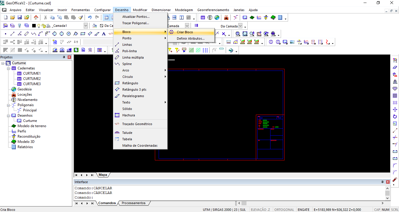 Você pode ou não, transformar sua Folha em um Bloco, em todo caso, atente-se para deixar o ponto de captura da Folha nas coordenadas X,Y iguais a 0,0 pois, este será também o ponto de inserção do bloco quando for solicitado pelo software e este define a posição de inserção no Desenho quando for usar, pois é uma referencia de coordenadas que o GeoOffice usa. Outro detalhe importante, é fazer o seu desenho na Escala 1:1000.