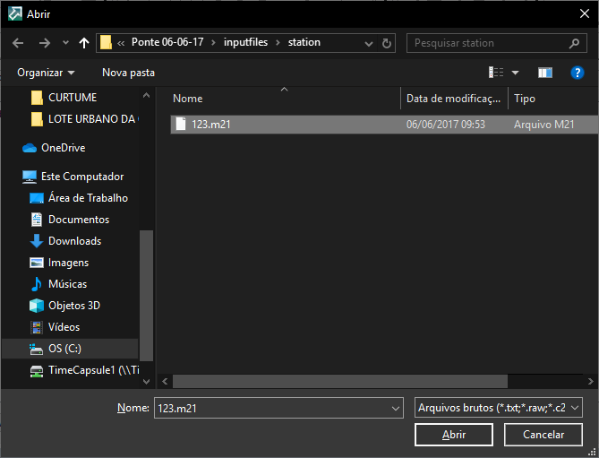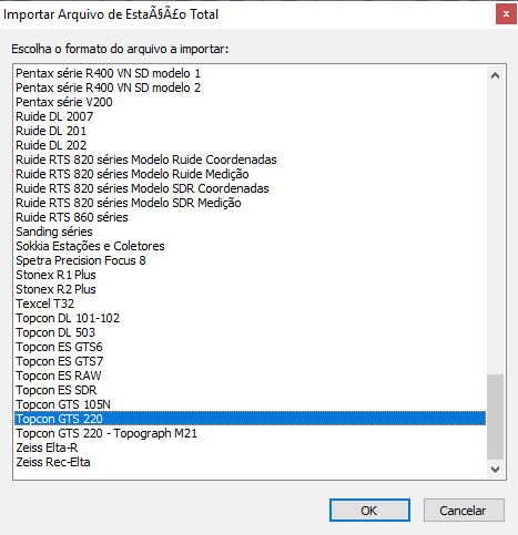 Na janela que se abrir, escolha o Modelo da Estação que usou para obter esse Arquivo Bruto e clique em "OK".
