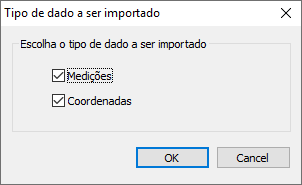 Na janela abaixo, escolha o tipo de Dado que quer que seja apresentado na sua Planilha, se Medição (Ângulo e Distância) ou se apenas Coordenadas. Mas você também pode deixar ambas opções selecionadas se quiser trazer tudo que foi coletado no levantamento. Em seguida clique em "OK".