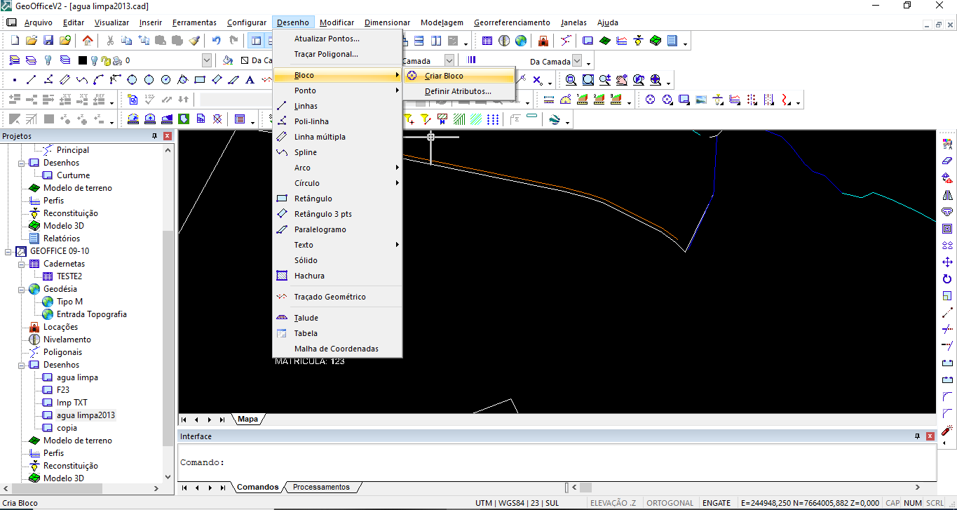 Esta informação pode ser um desenho criado dentro do próprio GeoOffice ou importado de algum outro software, basicamente qualquer objeto que se tenha inserido no Desenho, é possível Blocar.