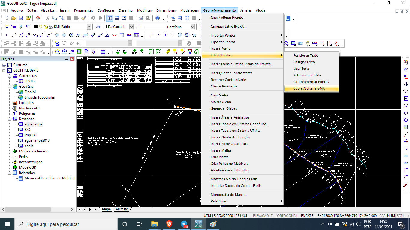 Para usar esta ferramenta, inicialmente entre no Menu Georreferenciamento / Editar Pontos / Copiar Editar SIGMA.