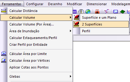 No Menu Ferramentas, selecione a opção Calcular Volume / 2 Superfícies.